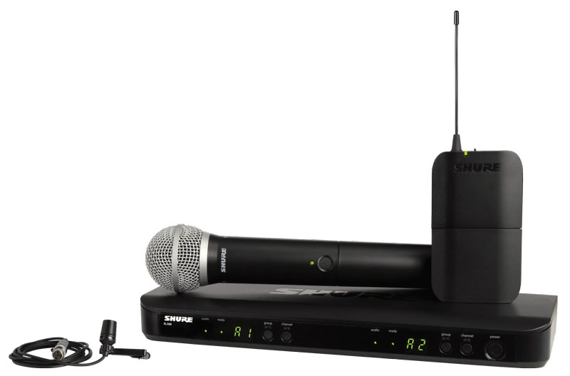 该系统包括BLX88双通道接收机、带BLX1腰包式发射机和PG58手持式发射机的CVL领夹话筒、电源、话筒夹、领夹、领夹式防风罩、2套五号电池和用户指南。